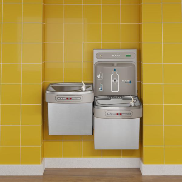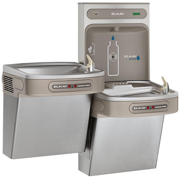 Elkay ezH2O® bezkontakta filtrējamā divu līmeņu pudeļu uzpildes stacija ar strūklaku nodrošina tīru un ātru ūdens pudeļu piepildīšanu, veicinot ilgtspējību un samazinot atkarību no vienreizlietojamām plastmasas pudelēm. Ierīce apvieno ūdens dzesētāju un uzpildes moduli ADA prasībām atbilstošā dizainā. Jaunais universālais dizains ļauj izvēlēties standarta montāžu (augstā kreisā / zemā labā puse) vai apgrieztu konfigurāciju atkarībā no telpas vajadzībām.